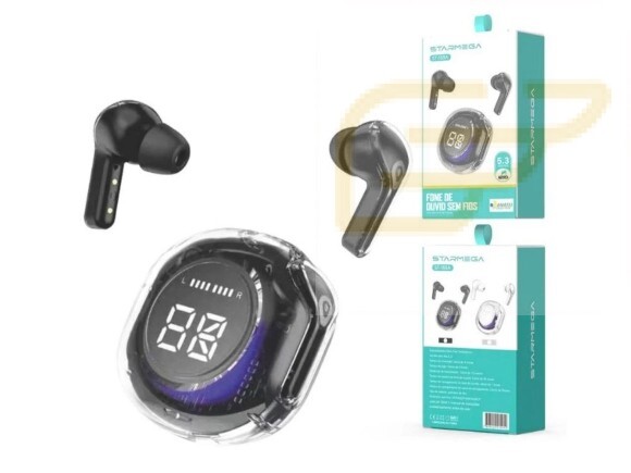 FONE DE OUVIDO BLUETOOTH 5.3 TRANSPARENTE STARMEGA ST-159A